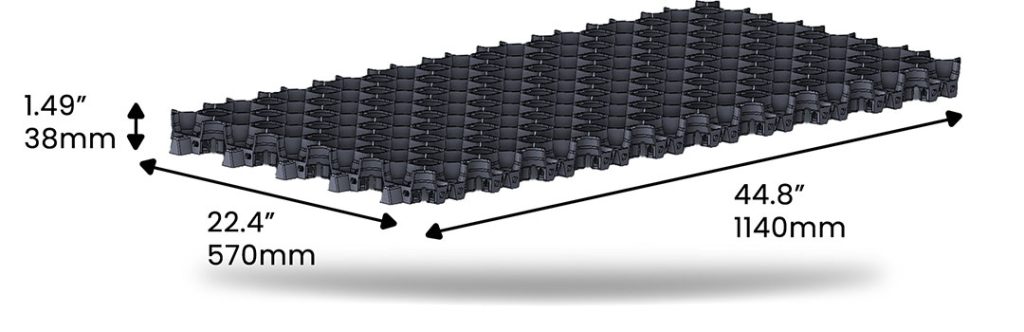 • Panel Size: 44.8” W x 22.4” L x 1.49” H – 1140mm W x 570mm L x 38mm H